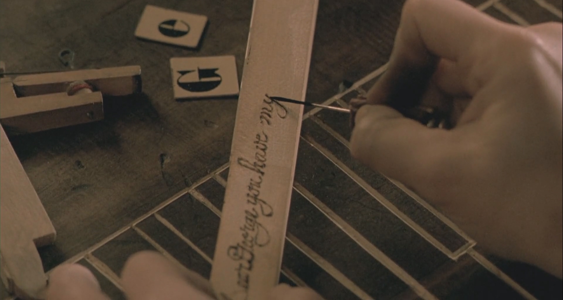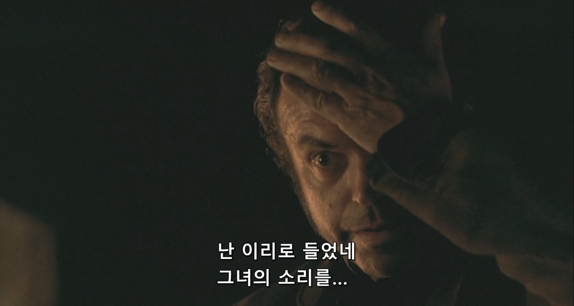 이 영화의 백미 같은 장면. 손가락이 잘린 에이다는 아무 표정 없이 하늘을 본다. 손가락이 잘린 고통도, 분노도 없이.. 섬뜩하기도 하고 불쌍한 에이다. 잘린 손가락은 베인스에게 보내 버린다. 만날 때마다 손가락을 하나씩 자르겠다는 메시지를 담아서..